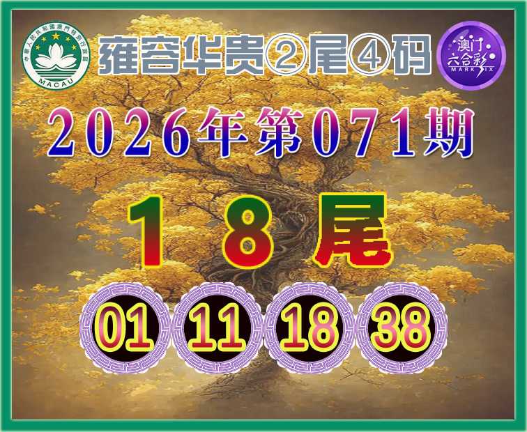 071期:『雍容华贵』 🌲②尾④码🌲【18尾主:01.11.18.38】开:48准