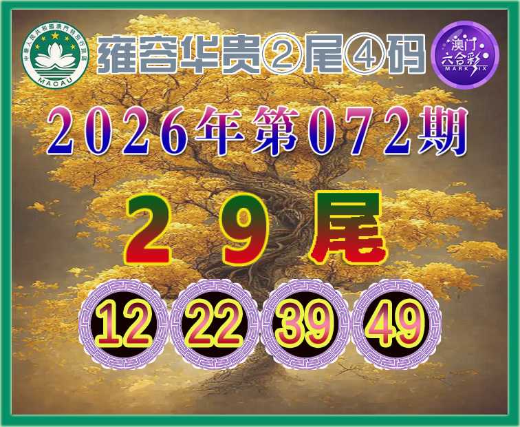 072期:『雍容华贵』 🌲②尾④码🌲【29尾主:12.22.39.49】开:46错