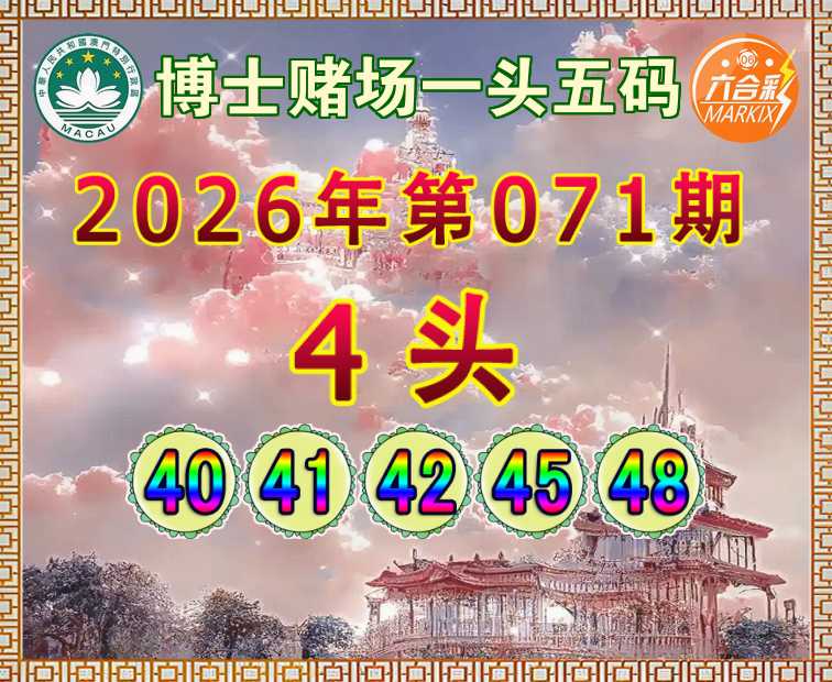 071期:【博士赌场】 🎈一头五码🎈【4头主:40.41.42.45.48】开:48准
