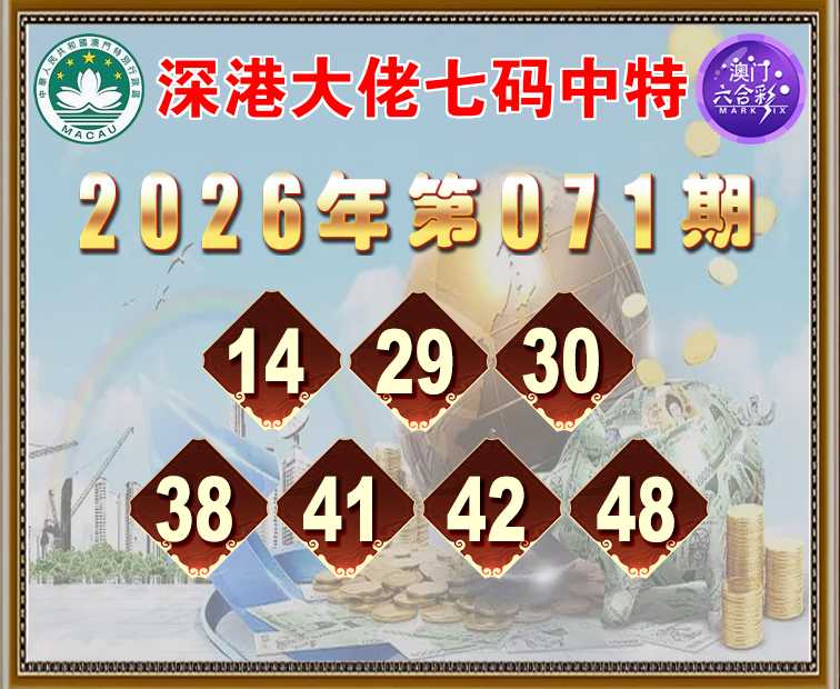 071期:〖深港大佬〗 ✌️七码中特✌️【14.29.30.38.41.42.48】开:48准
