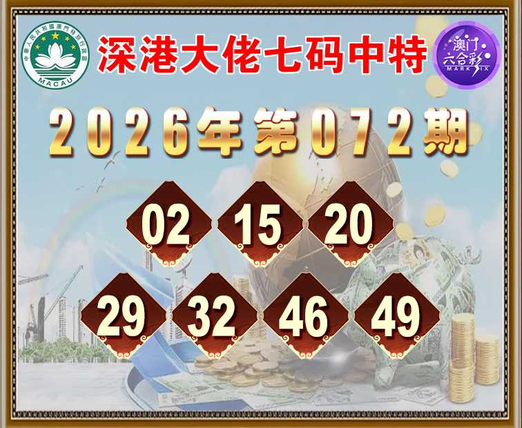 072期:〖深港大佬〗 ✌️七码中特✌️【02.15.20.29.32.46.49】开:46准