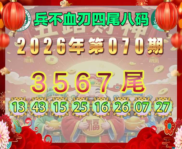 070期:《兵不血刃》 ♣️四尾八码 ♣️【3567尾】开:25准